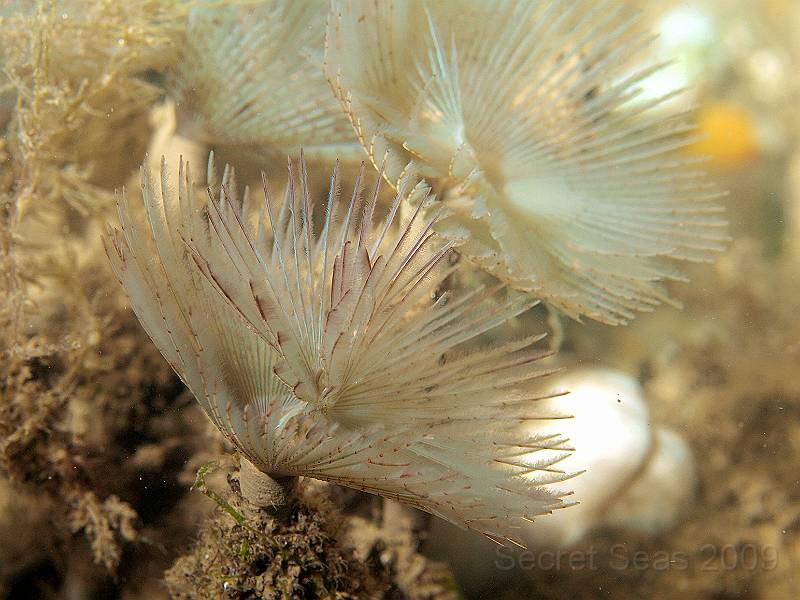 Peacock fanworms - Sabella pavonina - were sprouting from beneath the low wreckage