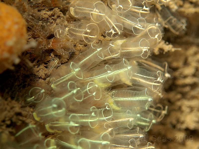 Lightbulb tunicates - Clavellina lepadiformis - you can see the square 'mesh' of their internal walls which 'confuses' creationists