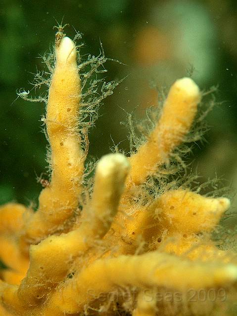Mermaid's glove sponge - Haliclona oculata with a coating of Skeleton shrimps - Caprella spp.