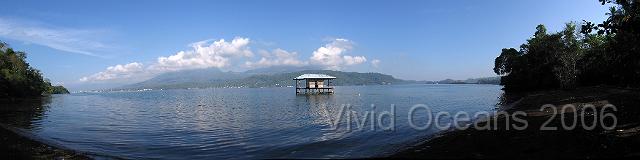 | The sea view from the Twofish Resort on Lembeh, over to the mainland across the strait | 05pano.JPG |